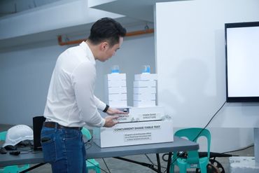 The ceremony started on the 18th floor led by Donway Sy (Director, Bamberton Development Corp.) then proceeded to Basement 1 to present the building's base isolation system and introduce the sister company, Quakesafe Phils, Inc., a one-stop-shop company promoting the use of seismic isolation bearing in mitigating the effects of a devastating earthquake. The event ended with Dioceldo Sy (CEO & Founder, Ever Bilena Cosmetics Inc.) giving the closing remarks.